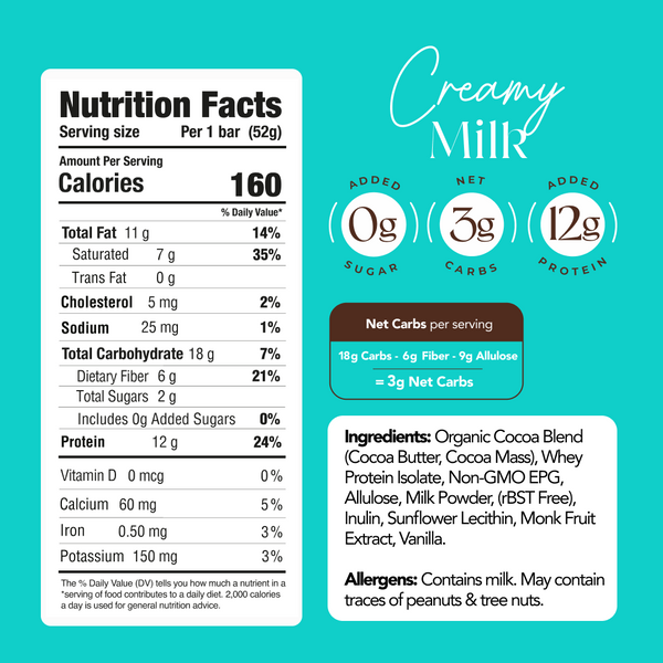 Keep carbs in check with only 3g of net carbs or less per bar.
