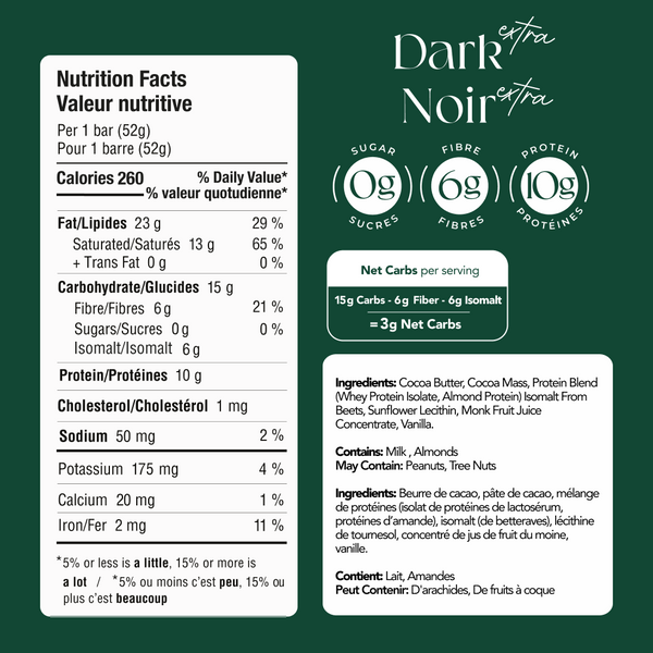Keep carbs in check with only 3g of net carbs or less per bar.
